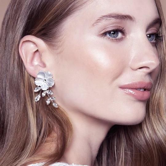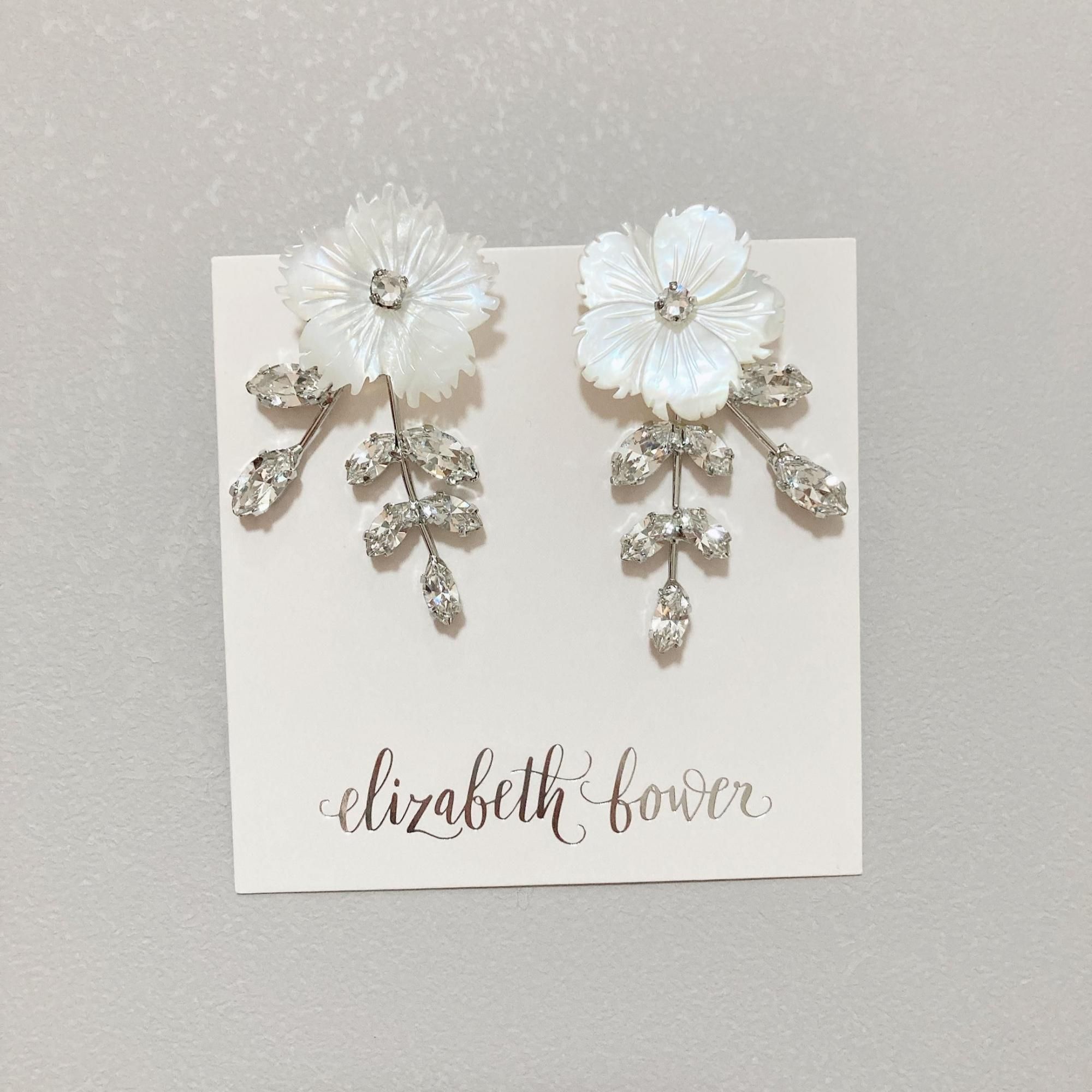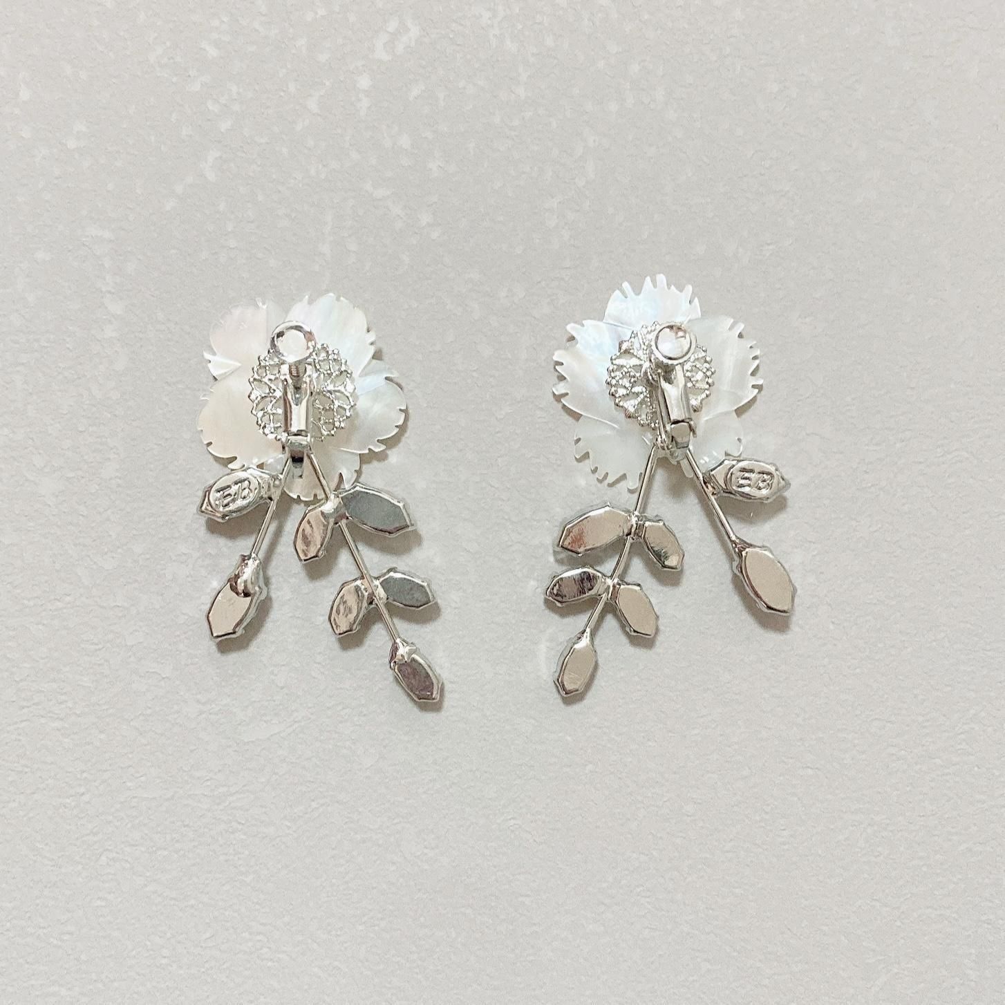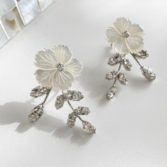 マザーオブパールのフラワーに、リーフをイメージしたクリスタルが美しいイヤリング。