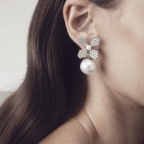 オーバーサイズのスワロフスキーパールがとびきりおしゃれなイヤリングです。
