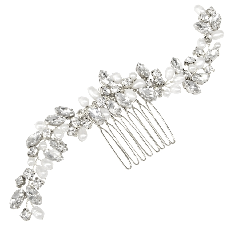 【Flora】淡水パールとクリスタルのコーム【Le Petit Spica】